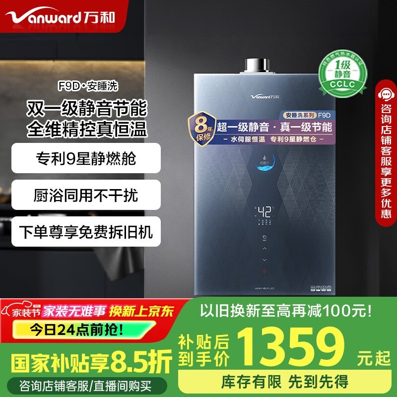 万和JSQ30-F9D16燃气热水器16升大容量智能恒温