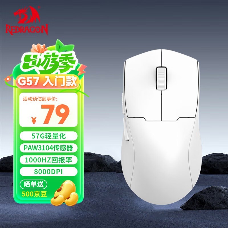 REDRAGON红龙G57三模鼠标白色8000DPI游戏鼠标仅60.6元