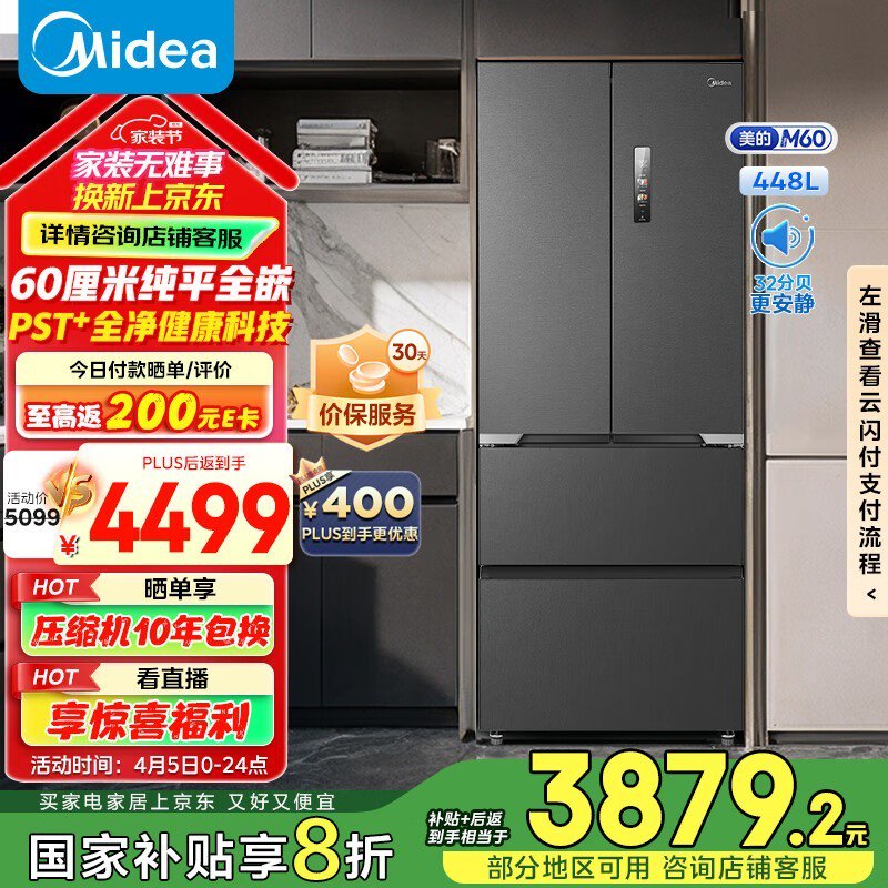 美的M60冰箱京东优惠,原价4589到手3270