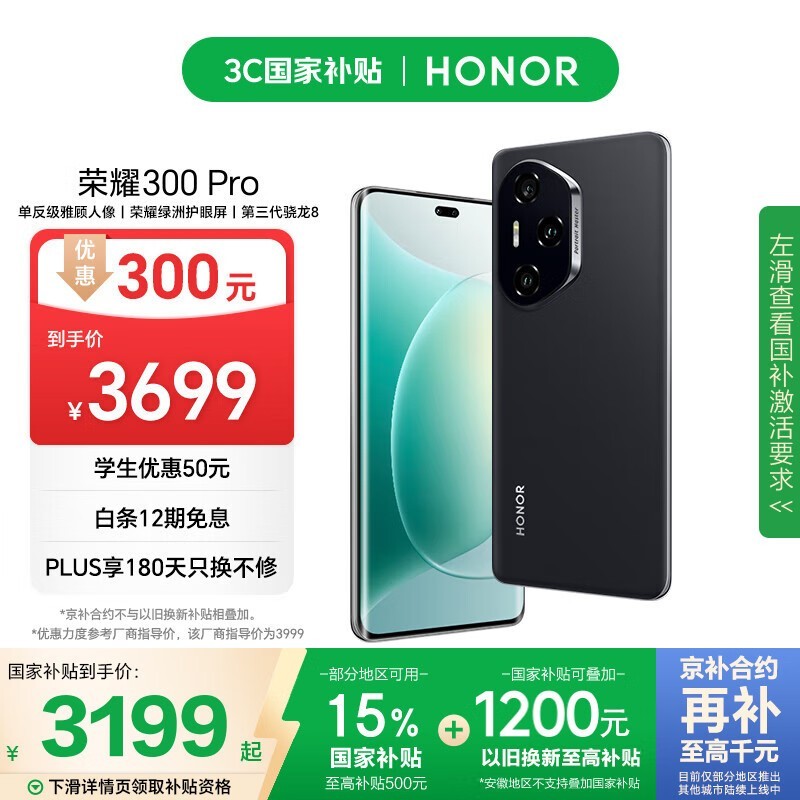 荣耀HONOR 300 Pro 5G手机京东优惠价2801元
