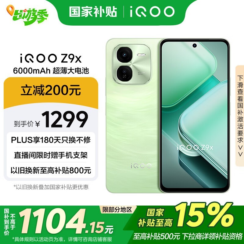 iQOO Z9x 5G手机大促,12GB+256GB存储低至1091元