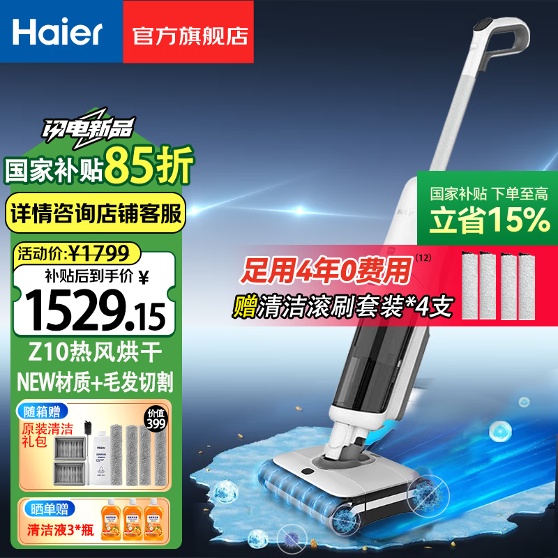 海尔Haier无线洗地机A1000双动力双滚刷清洁神器
