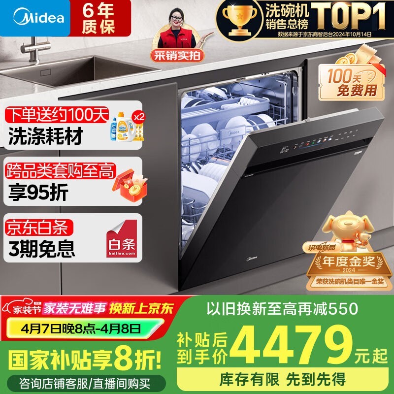 美的X6Max嵌入式洗碗机16套大容量热风烘干四星消毒京东特惠