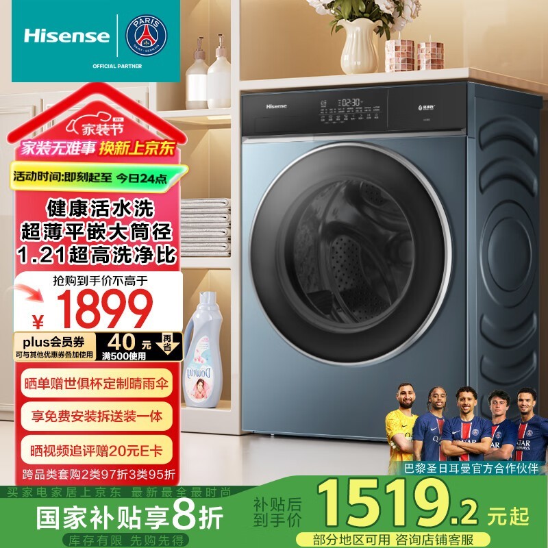 海信滚筒洗衣机HG10IE2全自动10公斤大容量智能投放促销