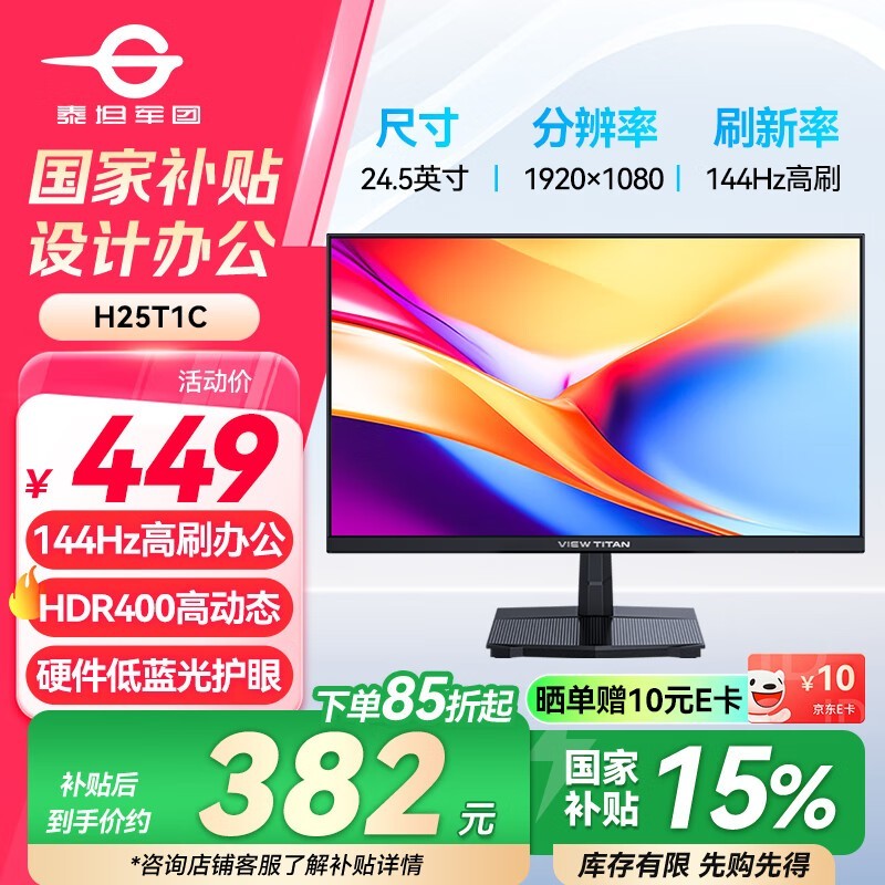 泰坦军团H25T1C显示器促销,低至369元