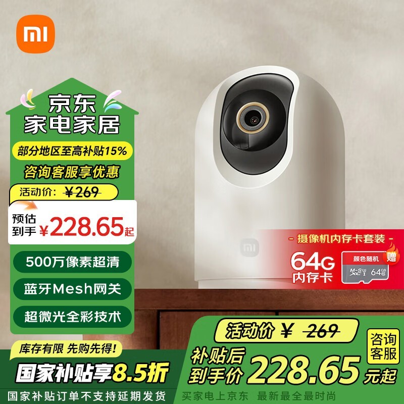 小米摄像头3Pro云台版+64G卡套装 188元可入手