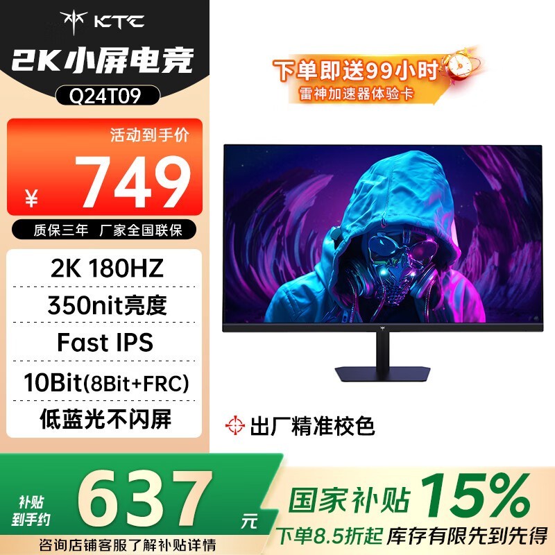 KTC Q24T09显示器180Hz高刷仅347元