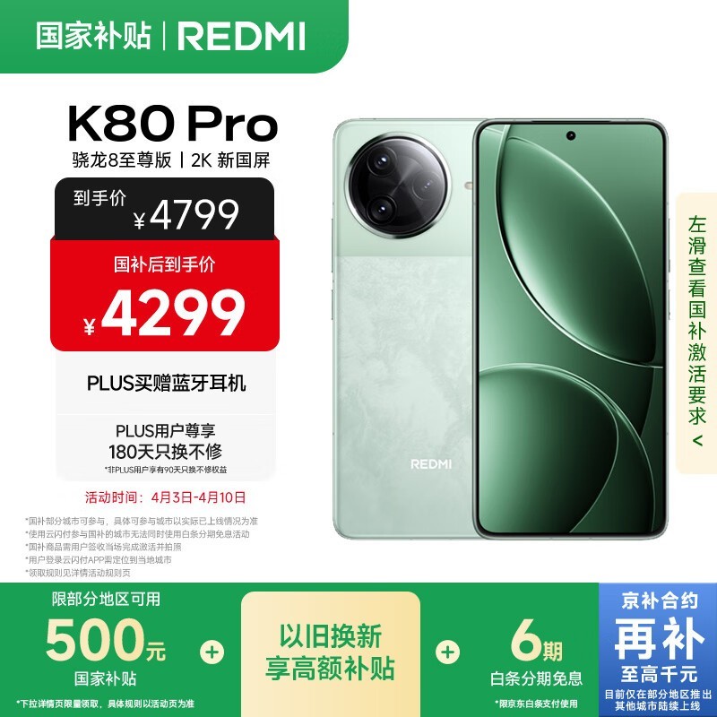 红米K80 Pro 5G手机16GB+1TB山峦青版仅4175元