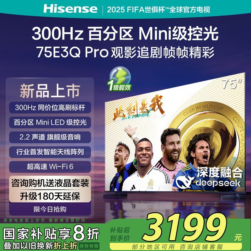 海信75E3Q Pro 75英寸电视300Hz刷新率仅3183元