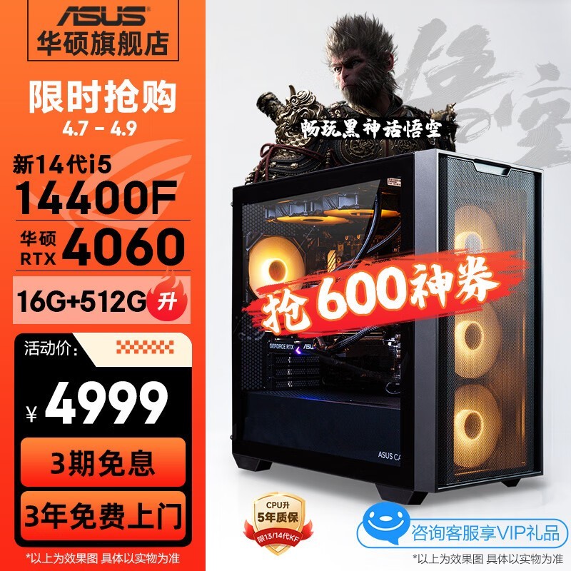 华硕未来者台式机i5-12490F/3060促销到手5599
