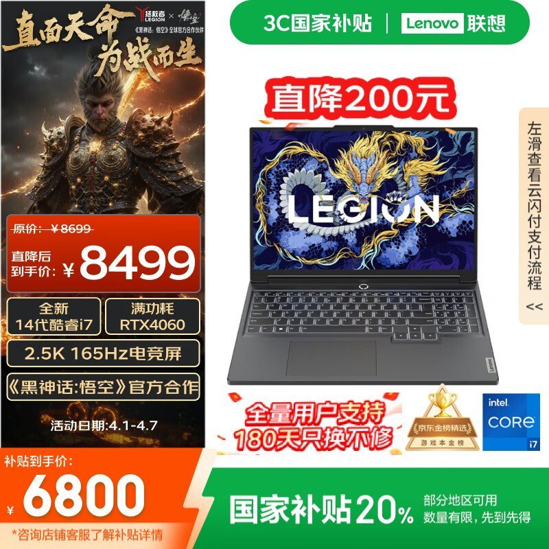 联想拯救者Y7000P 2024款游戏本京东优惠价6800元
