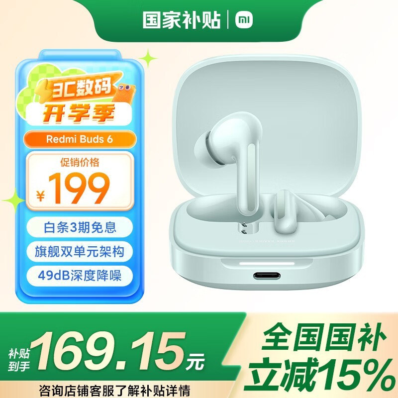 红米Buds 6竹韵青京东促销到手价168元