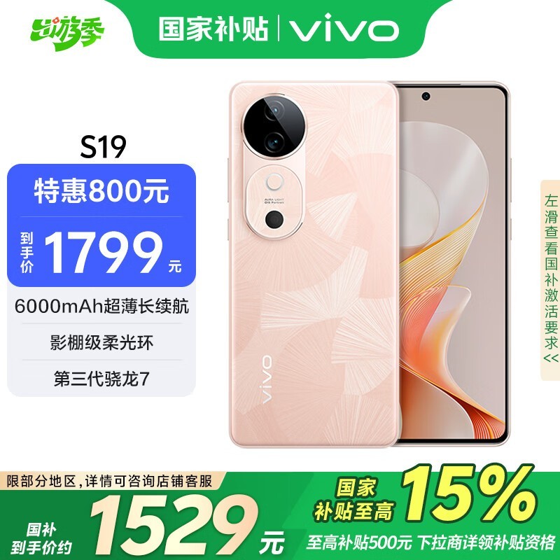 vivo S19 5G手机桃花扇配色京东特惠仅1513元