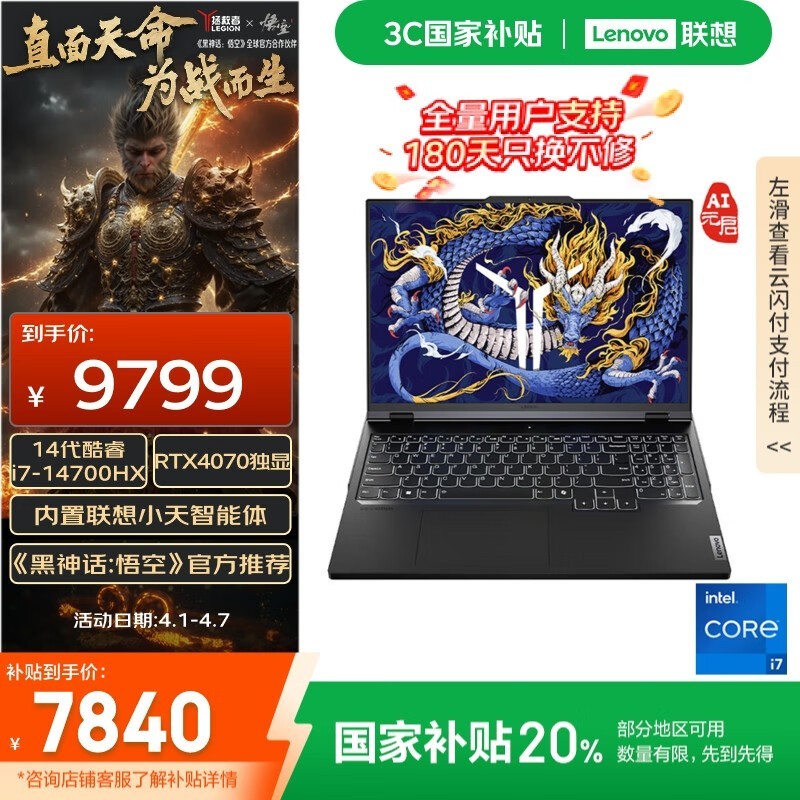 联想拯救者Y7000P 2024款i7-14700HX游戏本震撼首发