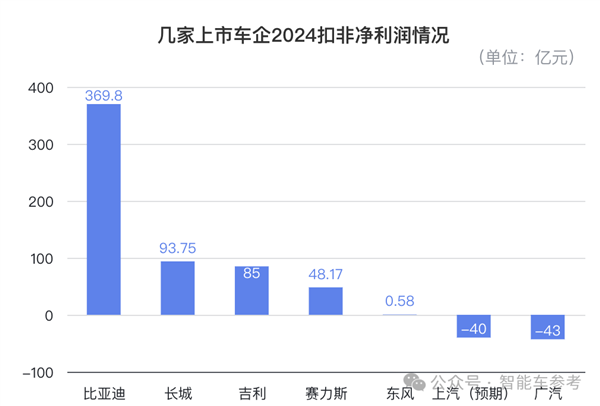 更直观衡量“造车”赚钱能力的扣非净利润,长城2024年的数据是93.75亿元。