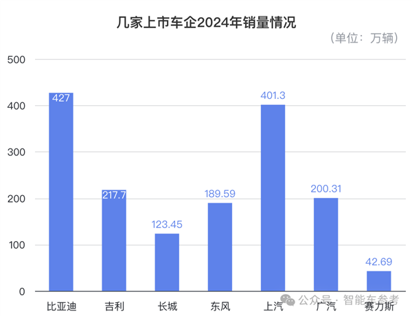 销量增长不明显的同时,总量也不是最大。100万级的长城汽车扣非净利润,超过产销200万辆级的吉利。