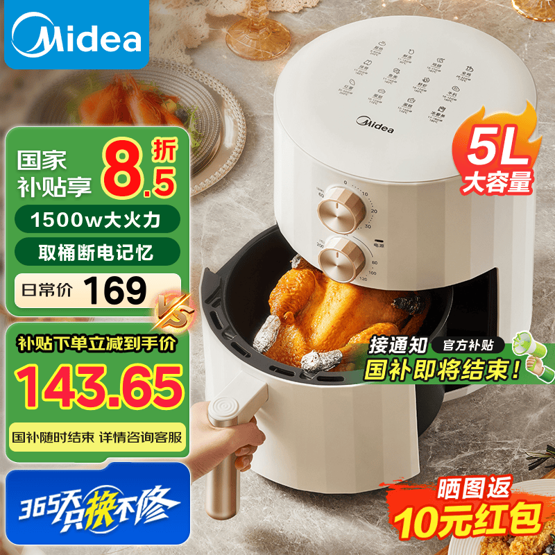 美的MF - KZE5006 5L空气炸锅,低至116元