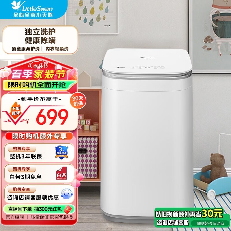 小天鹅TB30V80E迷你洗衣机3KG小巧精致仅414元