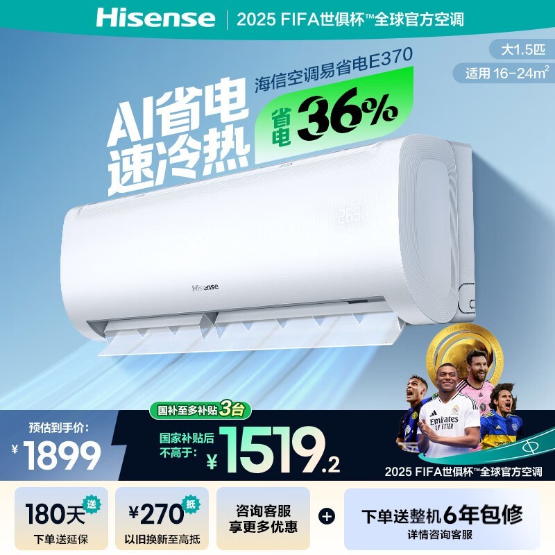海信舒适家1匹新一级能效空调低至1177元享多重优惠