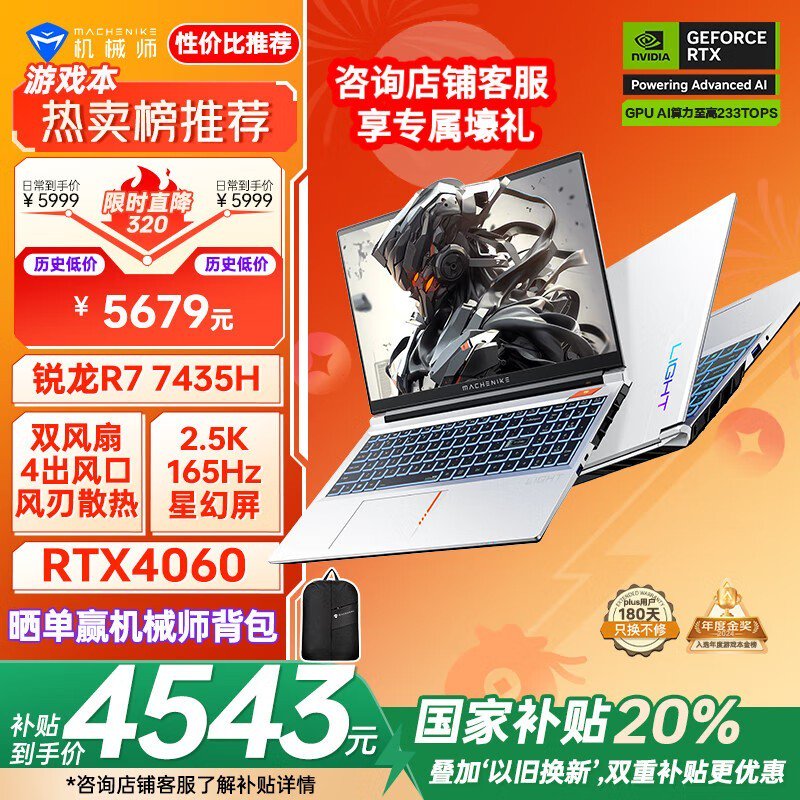 机械师曙光15Pro 2024款游戏本京东促销价4543元