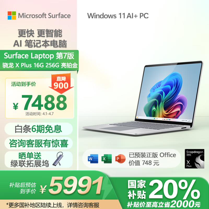 Microsoft Surface Laptop 7京东特价7388元