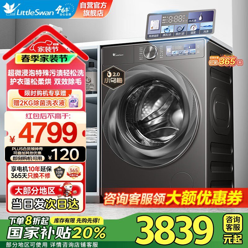 小天鹅滚筒洗衣机10公斤洗烘一体机全自动家用超薄设计