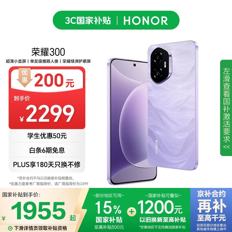 荣耀HONOR 300 5G手机庐烟紫超值优惠价