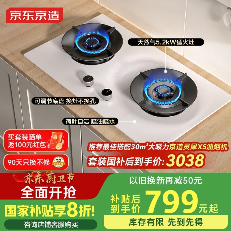 京东京造燃气灶羽纱白大火力嵌入式煤气灶
