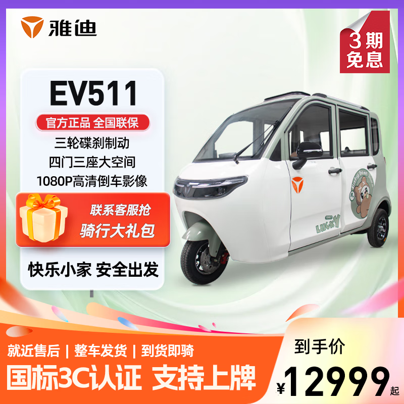雅迪EV511全封闭电动三轮车海沫绿京东限时优惠