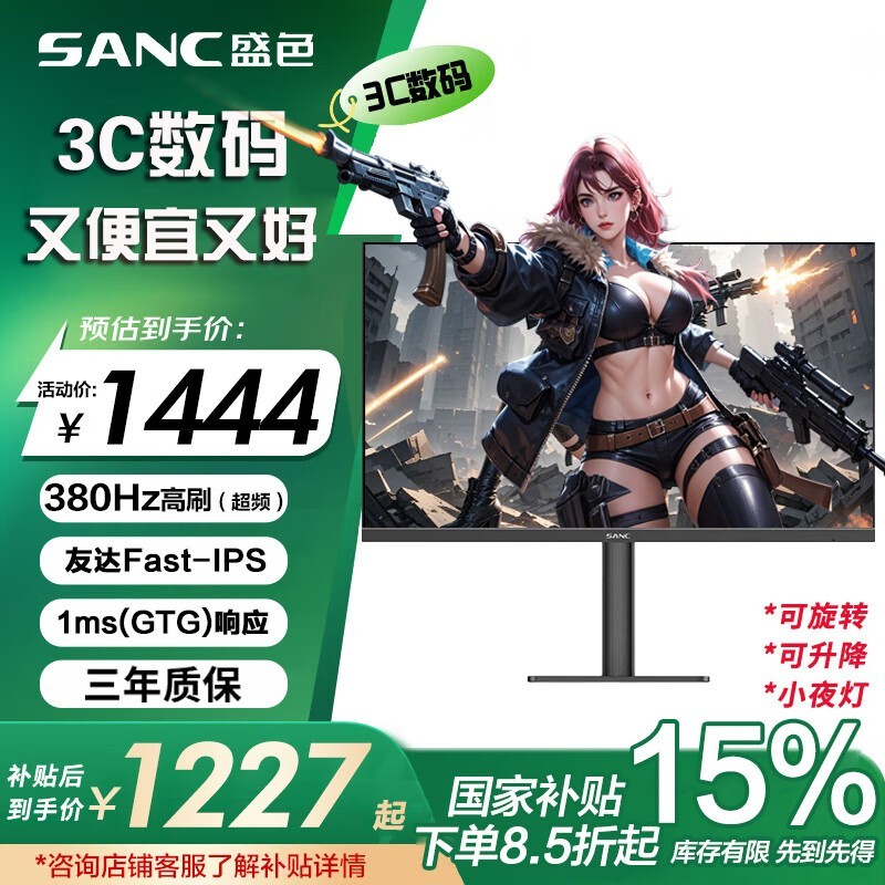 SANC 24英寸电竞显示器京东活动价低至1277元