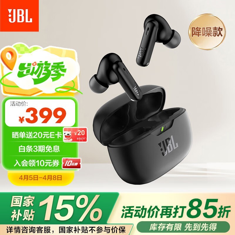 JBL WAVE BEAM 2真无线主动降噪耳机黑色 纯净音质享受