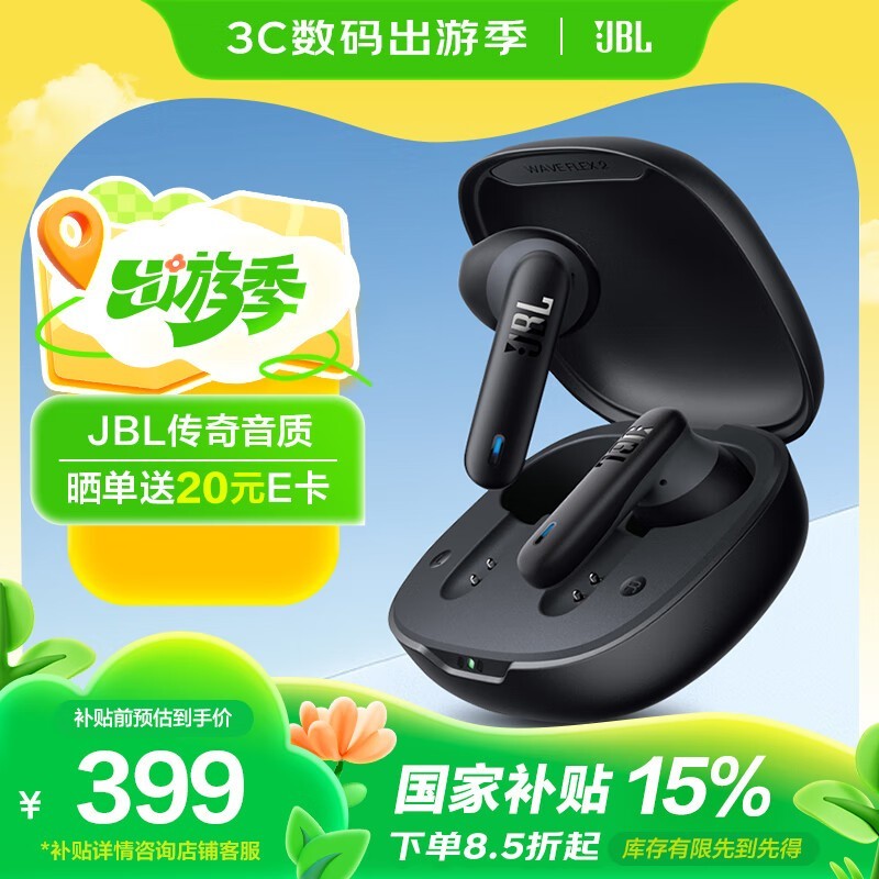 JBL WAVE FLEX 2蓝牙耳机曜石黑促销