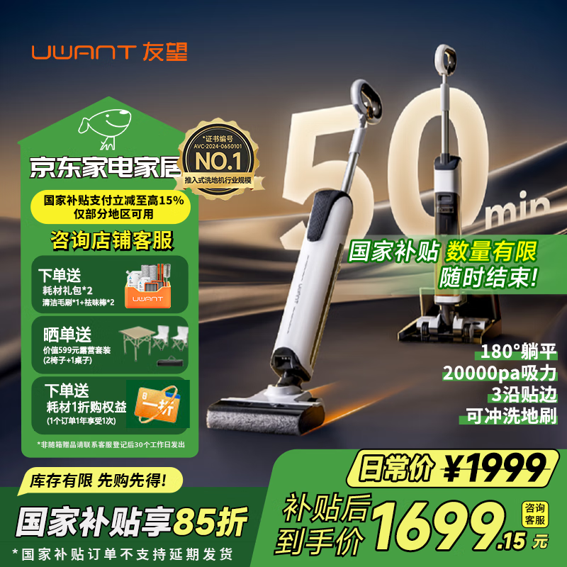 UWANT友望云朵Plus推入式无线智能洗地机促销信息