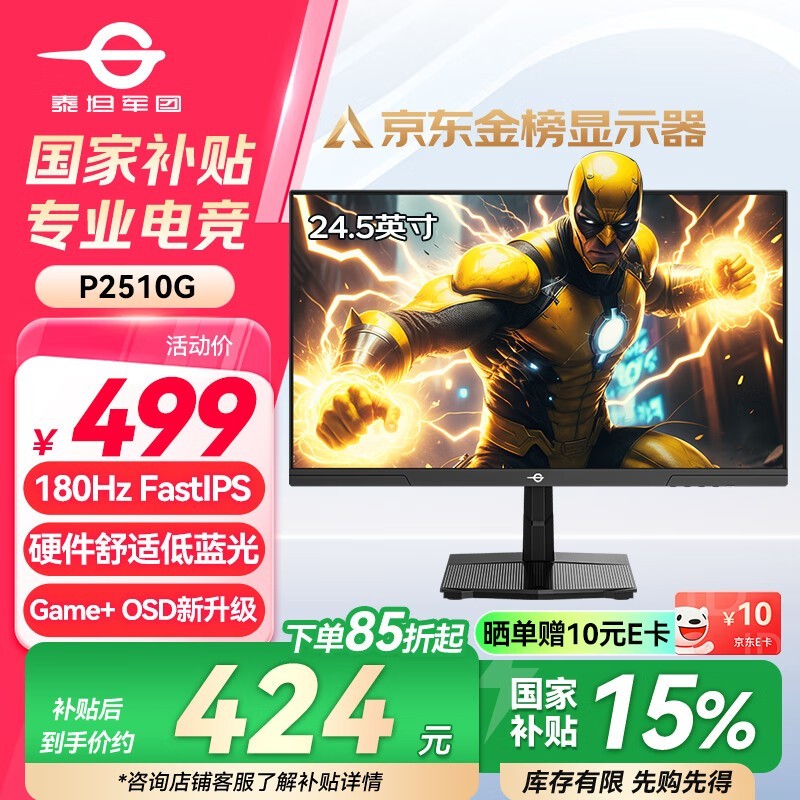 泰坦军团P2510G显示器京东优惠低至411元