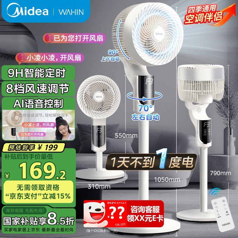 华凌智能空气循环电风扇仅80.01元