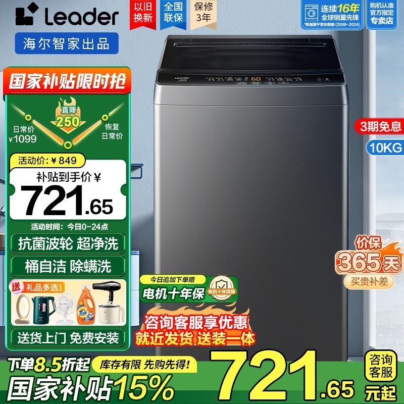 高性价比海尔Leader波轮全自动洗衣机10公斤大容量