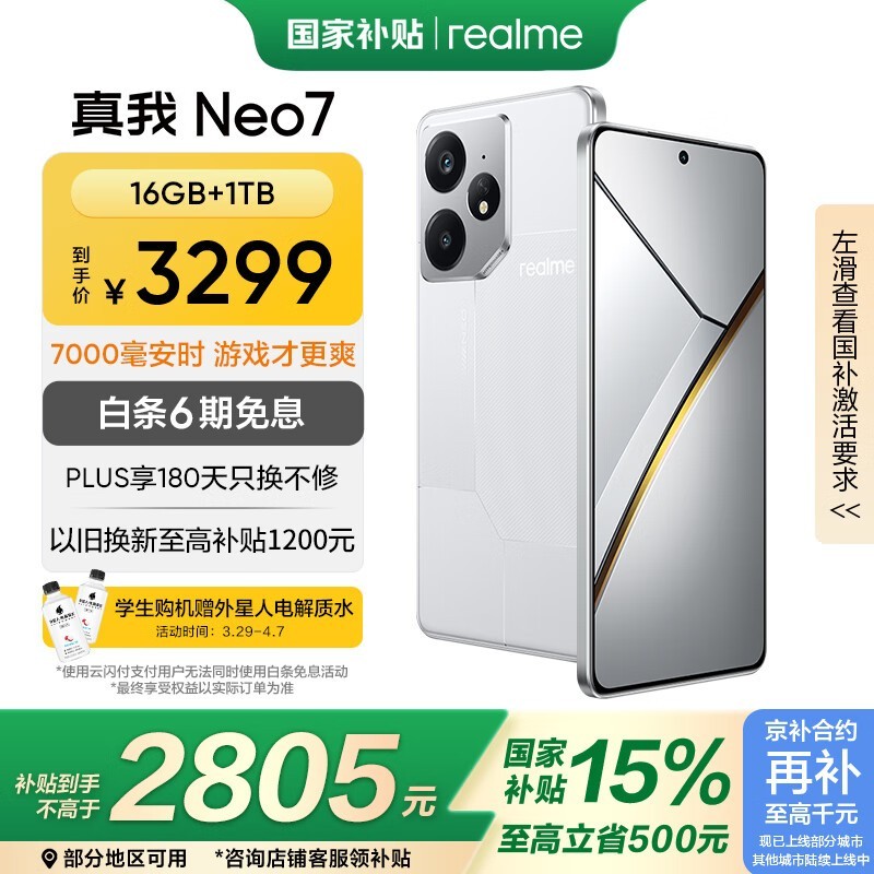 realme Neo7 5G手机16GB+1TB星舰版促销低至2523元