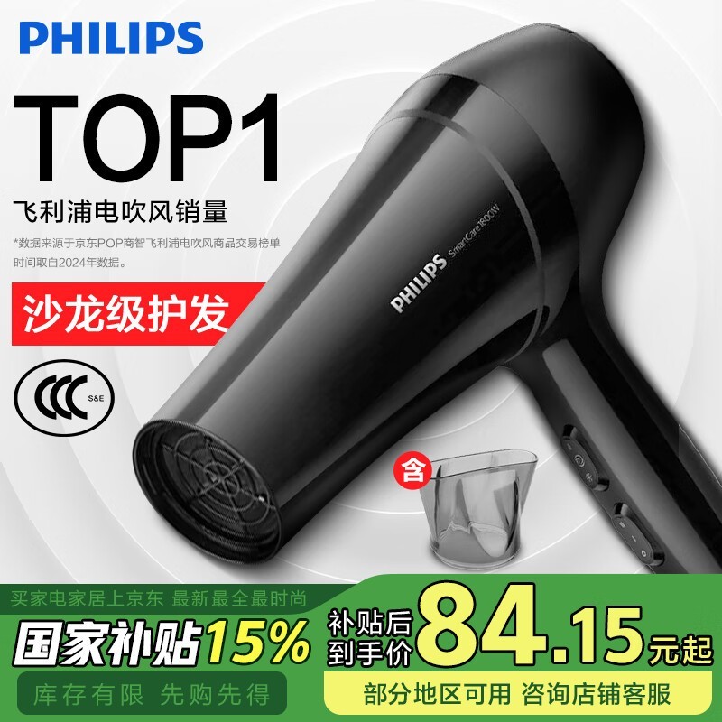飞利浦BHC020电吹风1800W大功率护发功能京东68.93元包邮