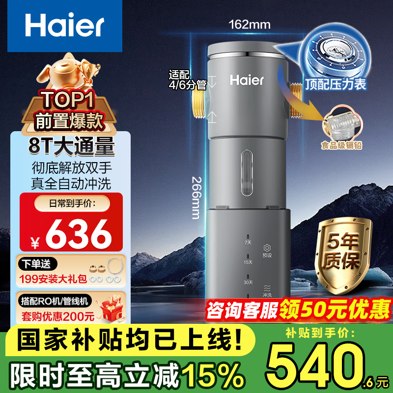 京东优惠中海尔HP-45前置过滤器到手价471元