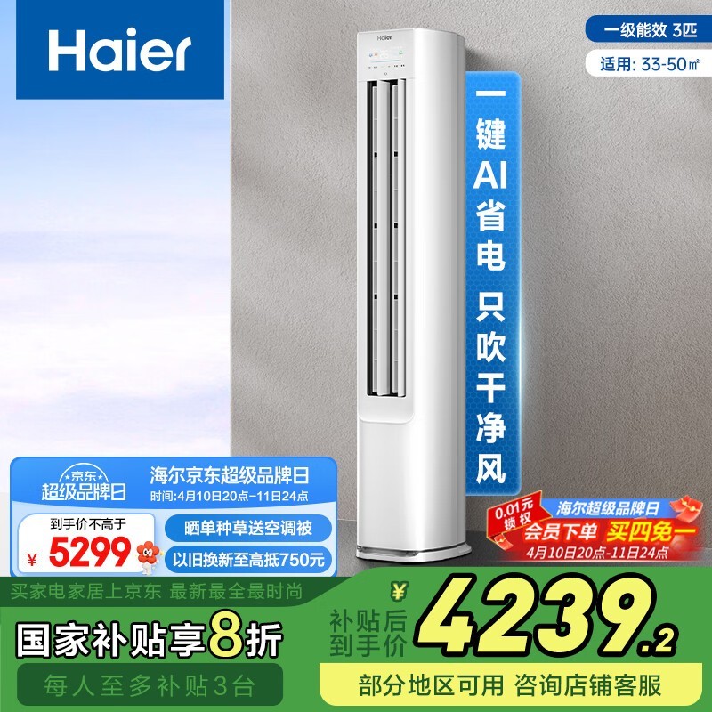 海尔Haier小红花3匹空调新一级能效好价