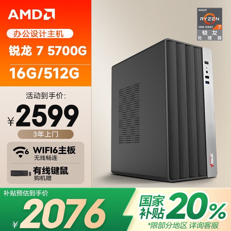 AMD&华硕台式机 锐龙R7主机低至2076元