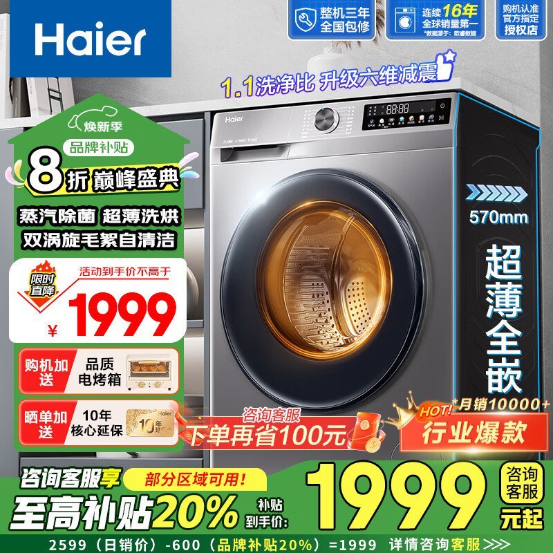 海尔XQG100-H507S洗烘一体机10kg超薄设计促销中