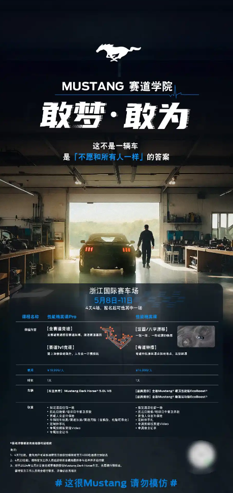 其中,核心课程为面向Mustang Dark Horse车型的“性能精英课Pro”和面向Mustang硬顶性能版与敞篷运动版的“性能精英课”。