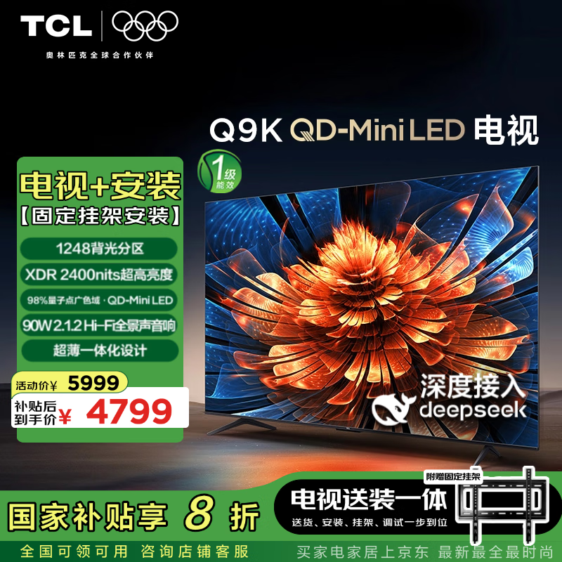 TCL 75Q9K 75英寸4K电视促销到手仅3919元