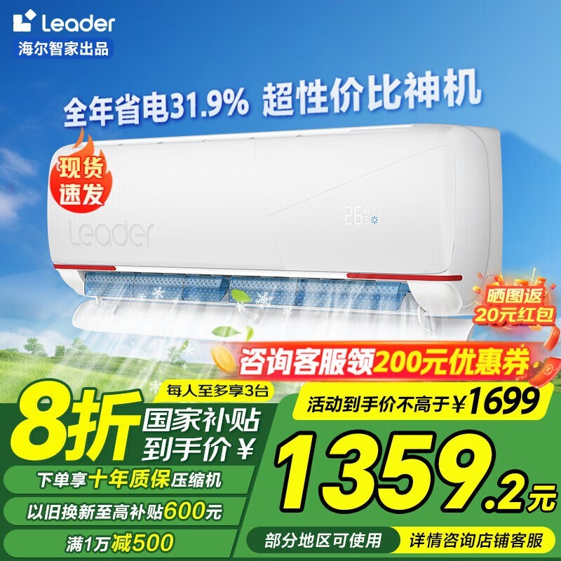 Leader元气系列空调1匹新一级能效仅961元