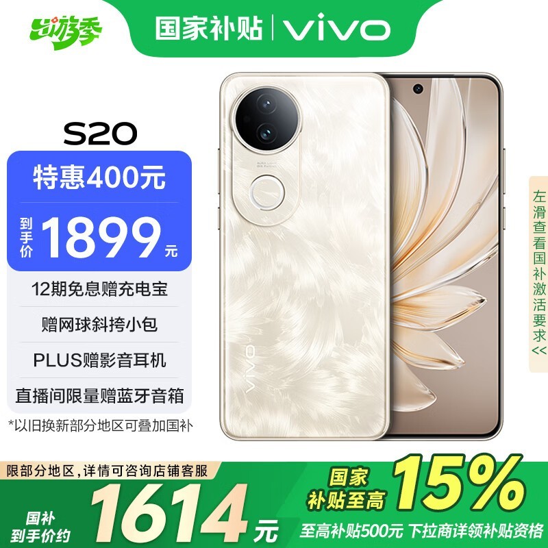 vivo S20 5G手机凤羽金8GB+256GB超大存储促销
