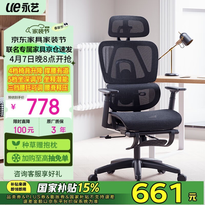 永艺ACT100撑腰椅人体工学电脑椅京东好价672元