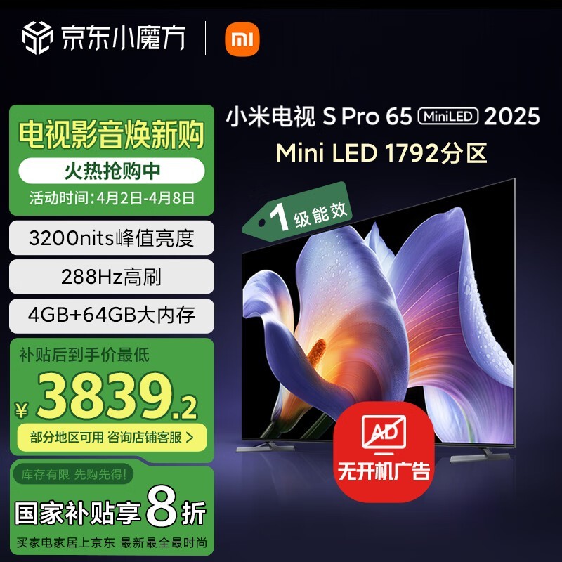 小米S Pro 2025系列电视65英寸4K京东特惠3627元到手
