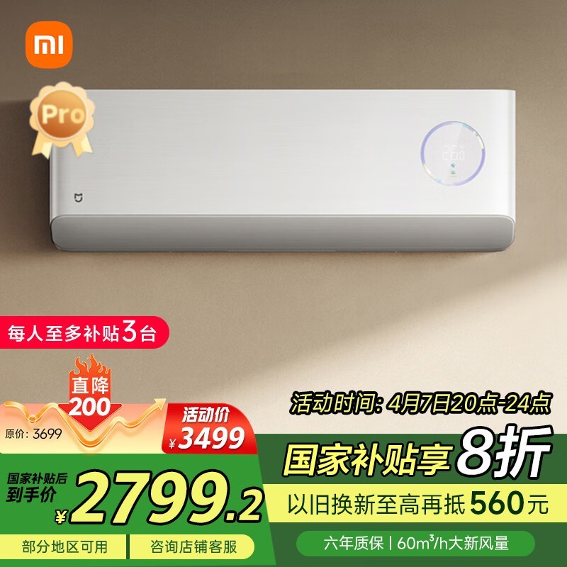 小米1.5匹变频空调新风Pro大1匹节能静音挂壁式