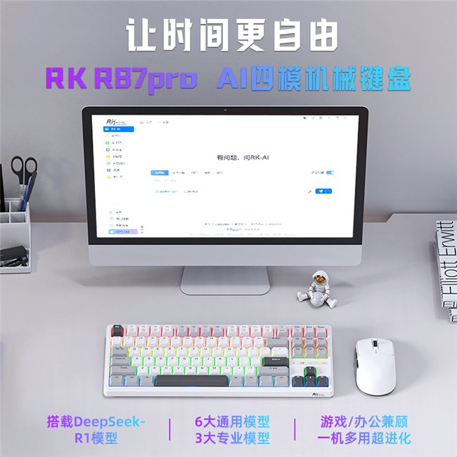 2025年4月6日,RK正式发布首款AI四模机械键盘。作为行业革新产品,R87PRO AI四模机械键盘以Deepseek-R1智能模型为核心,构建起办公智能生态全场景,突破传统机械键盘局限,打破办公与电竞之间的壁垒,实现一机多用。